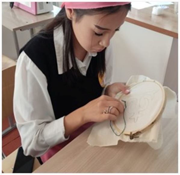 2025 жылдың 14 қазан күні Көркем еңбек пәнінің мұғалімі Э.Ж. Айдаралиева 8 «Б» сынып оқушыларымен «Әшекейлерді пайдалана отырып сәндеу» тақырыбында ашық сабақ өткізді. Үй тапсырмасын «Сиқырлы қоржын» әдісі бойынша қайталап өтті. Қолөнер шебері –Айгүл Жансерікова туралы видео таспаны көре отырып жаңа тақырыпты ашты. Сабақ барысында топтық, жұптық тапсырмалар орындалды. Ұлттық құндылықтар ою суреттері арқылы ҚБ жүргізілді.