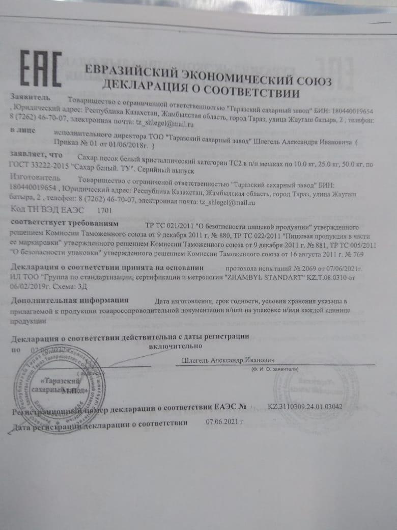 » » Тамақ өнімдерінің сертификаты: шәй, тұз, шекер, қант