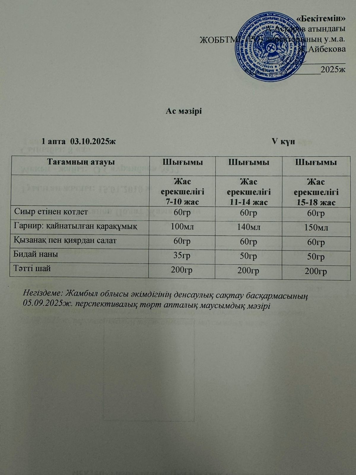 Ас мәзірі 03.10.2025 ж