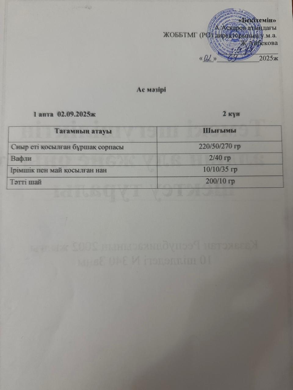 Ас мәзірі 02 қыркүйек » №1 жалпы орта білім беретін мектеп