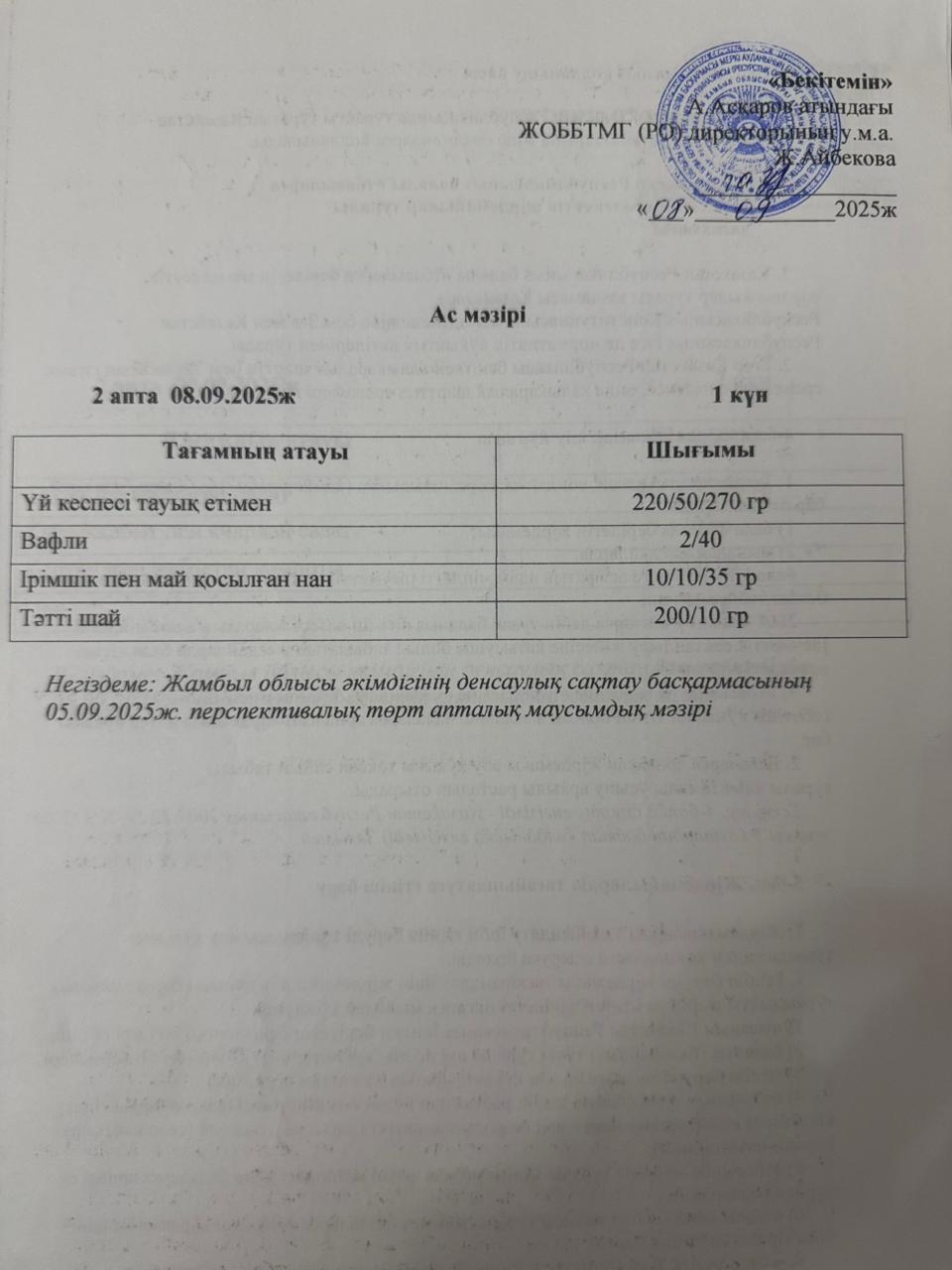05 сентябрь 2025 ас мәзірі 05 қыркүйек