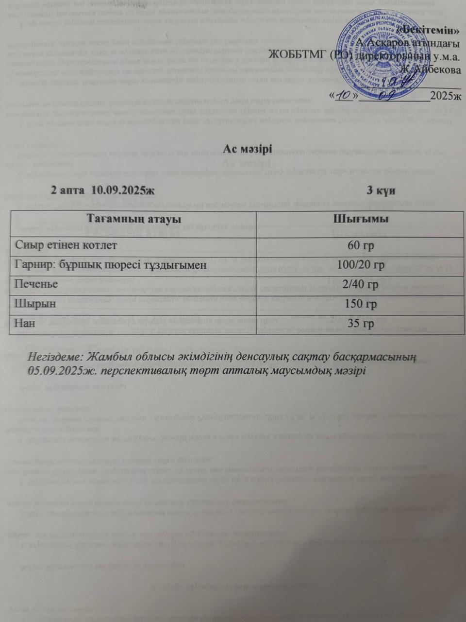 10 сентябрь 2025 Ас мәзірі 10 қыркүйек