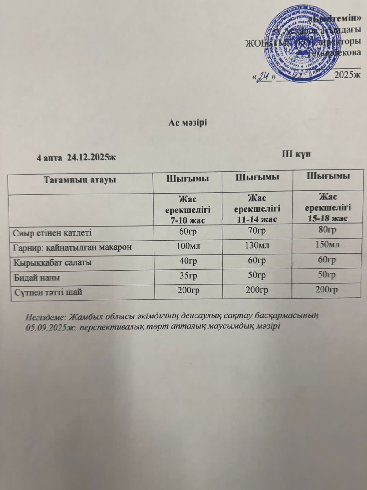 24 сентябрь 2025 Ас мәзірі 24 қыркүйек