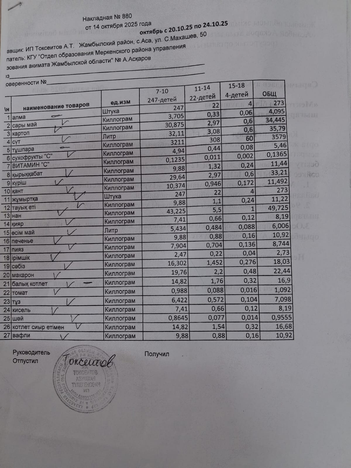 Қабылдау бөлімі :