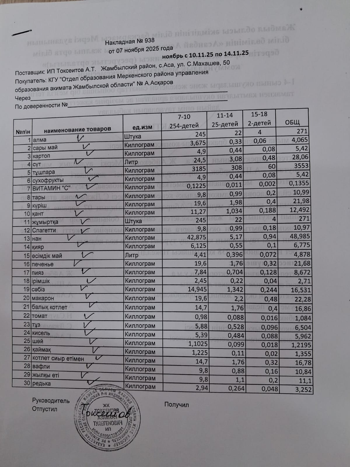 Қабылдау бөлімі :