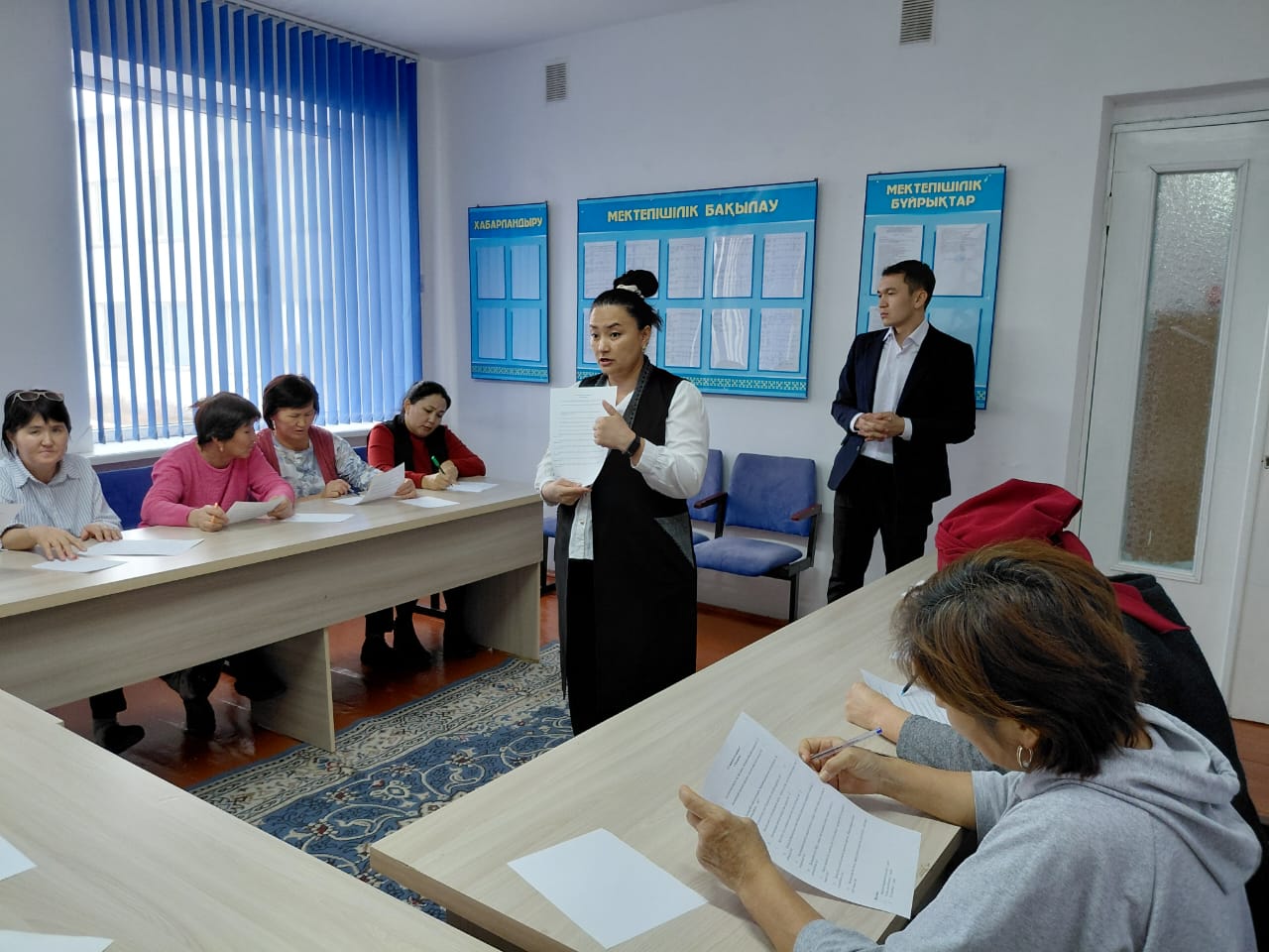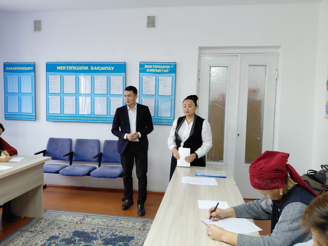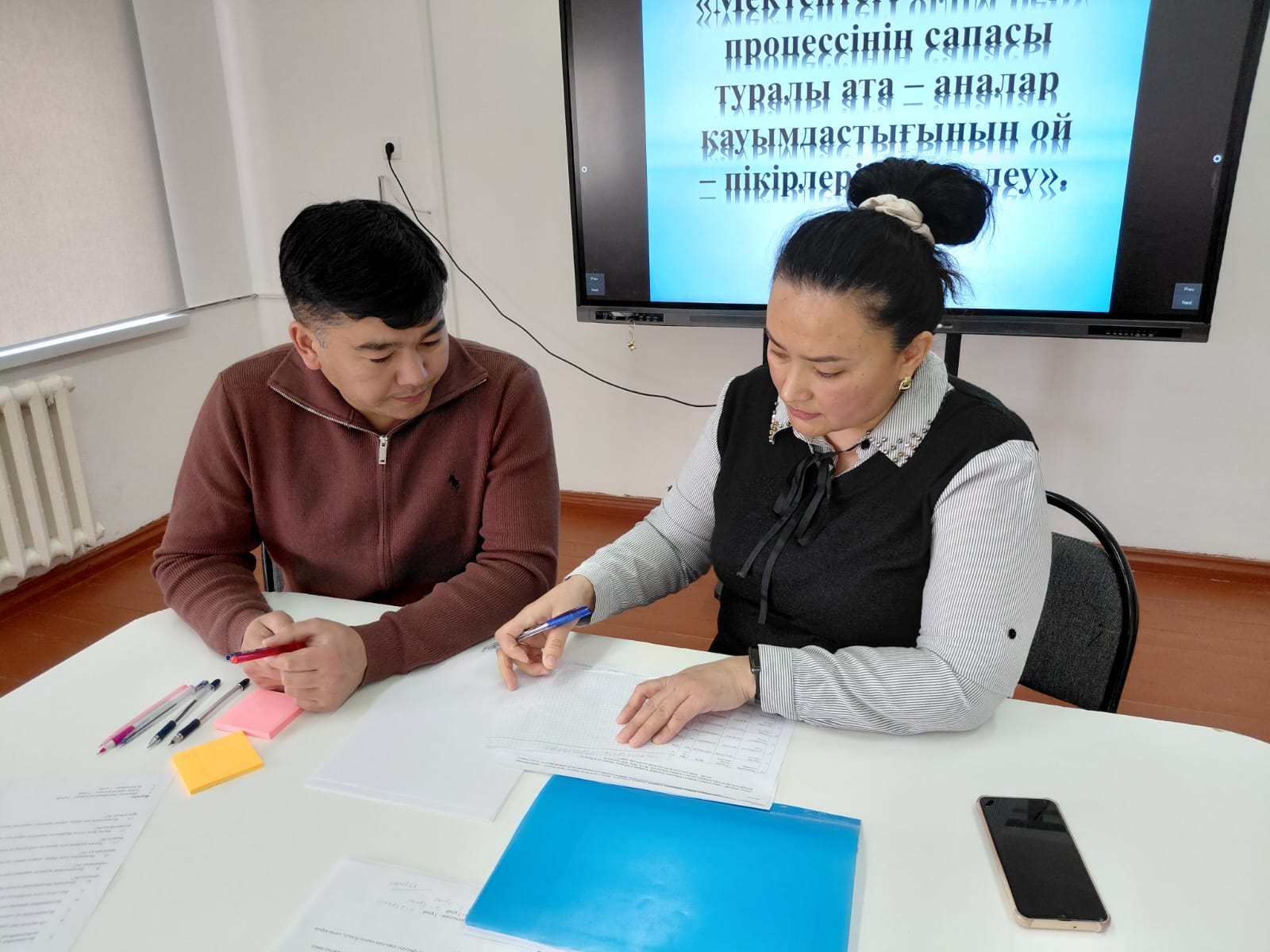 Мектептегі білім беру процесінің сапасы туралы ата-аналар қауымдастығының ой-пікірлерін білу мақсатында ата-аналарға сұрақтар қойылып, сауалнамалар жүргізілді. Кездесуге ШЖМ-ның басшылары мен оқу ісі жөніндегі орынбасарлары, әлеуметтік педагогтары қатысты. Кездесу барысында ата-аналар «Ауыл мектебі-сапа алаңы» жобасы бойынша 5 пәннен қашықтықтан (онлайн) оқыту жұмыстары туралы өз ой - пікірлерін ортаға салды.